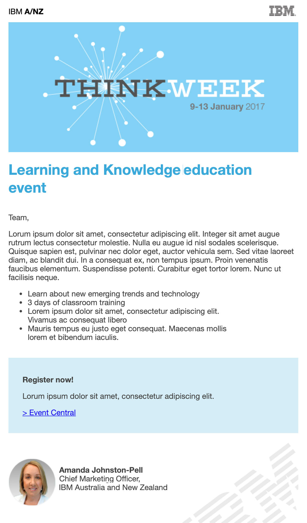 As well as core assets for email marketing campaigns, I develop corporate and campaign templates for use by communication professionals. By providing comprehensive training and support on using the templates I embed brand integrity with a user-friendly process.
